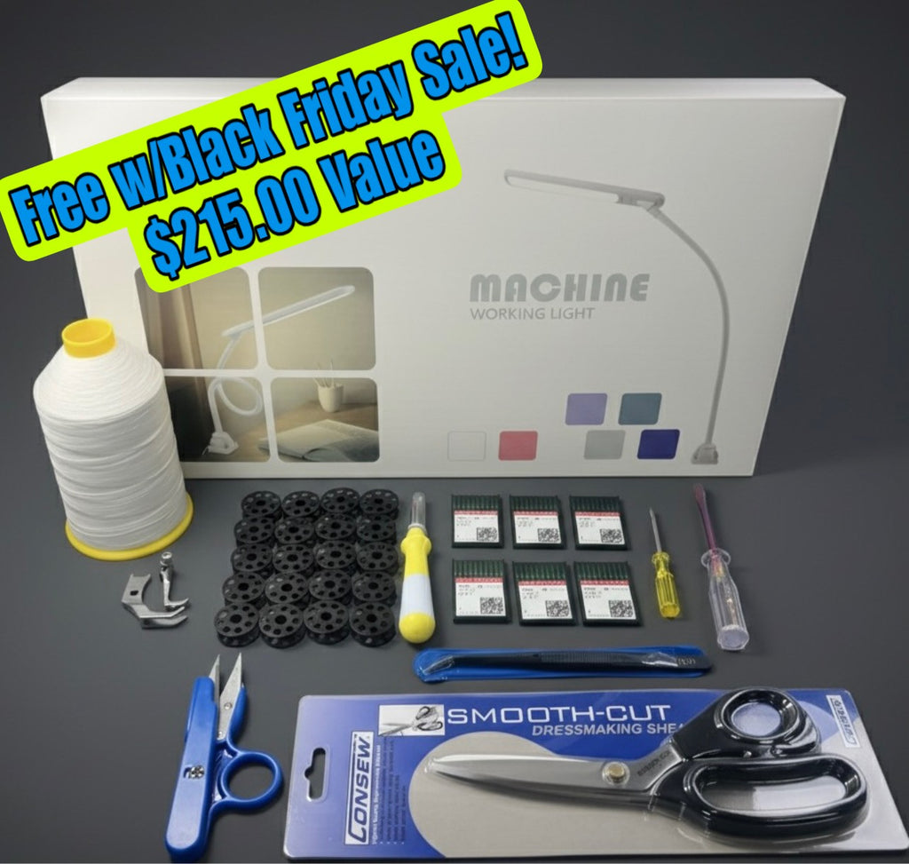 - Large hook and bobbins for extended thread life even with the thickest of threads.